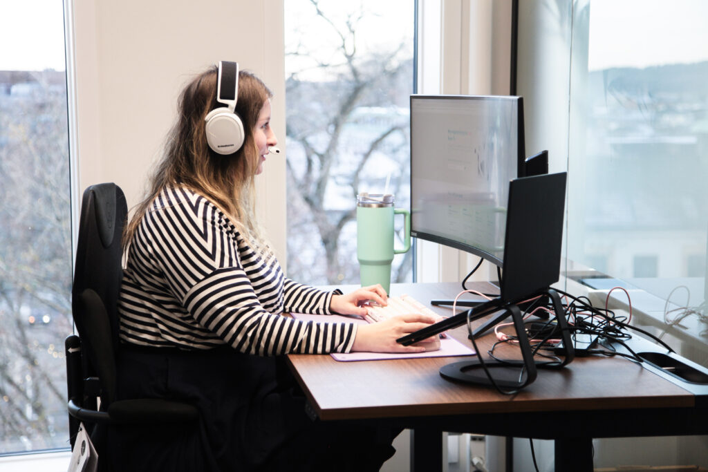Teknisk support-spesialist som betjener Uniwebs WordPress-henvendelser i moderne kontormiljø